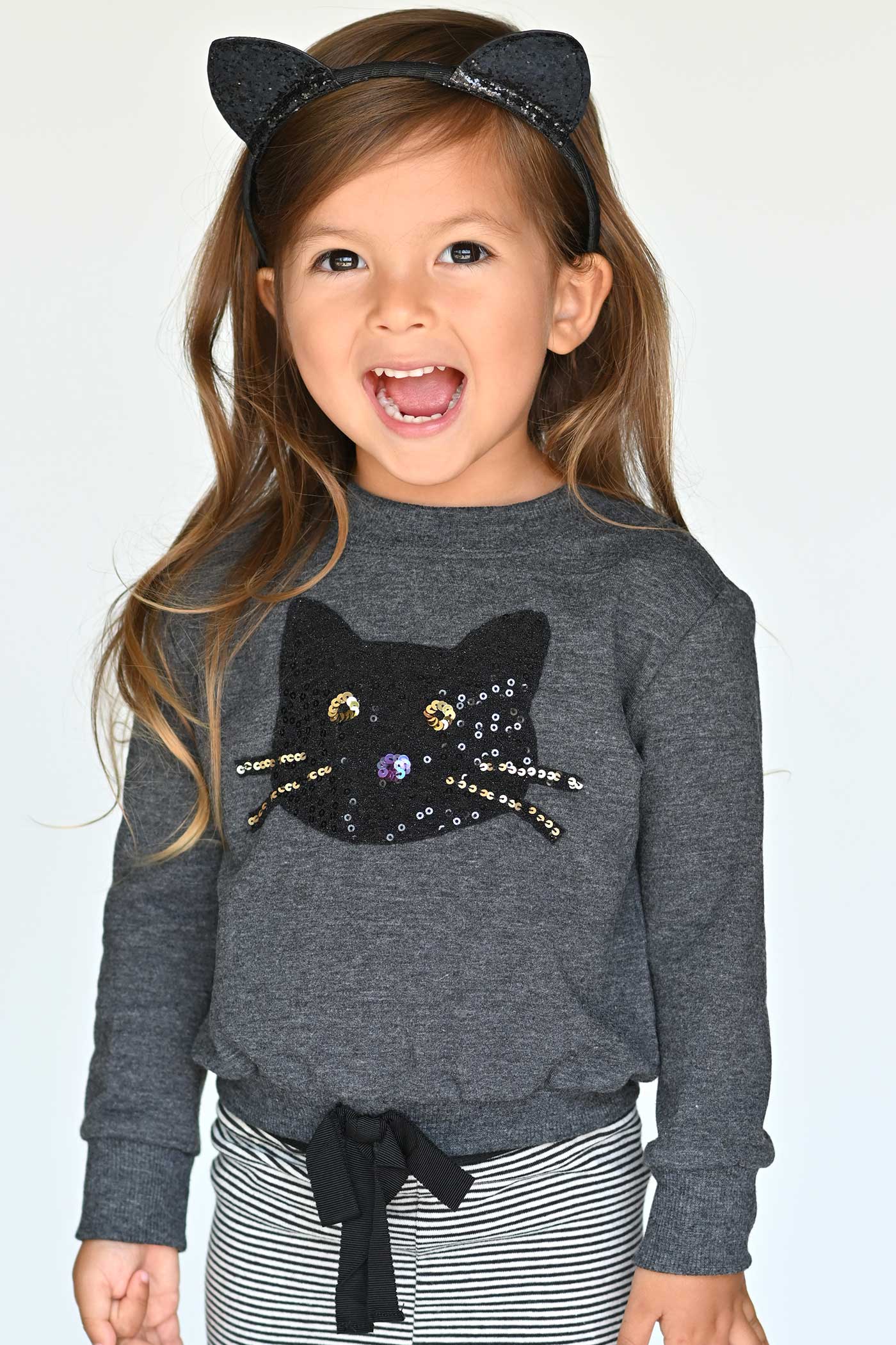 - Super cute sequin black cat with adorable purple nose and gold whiskers