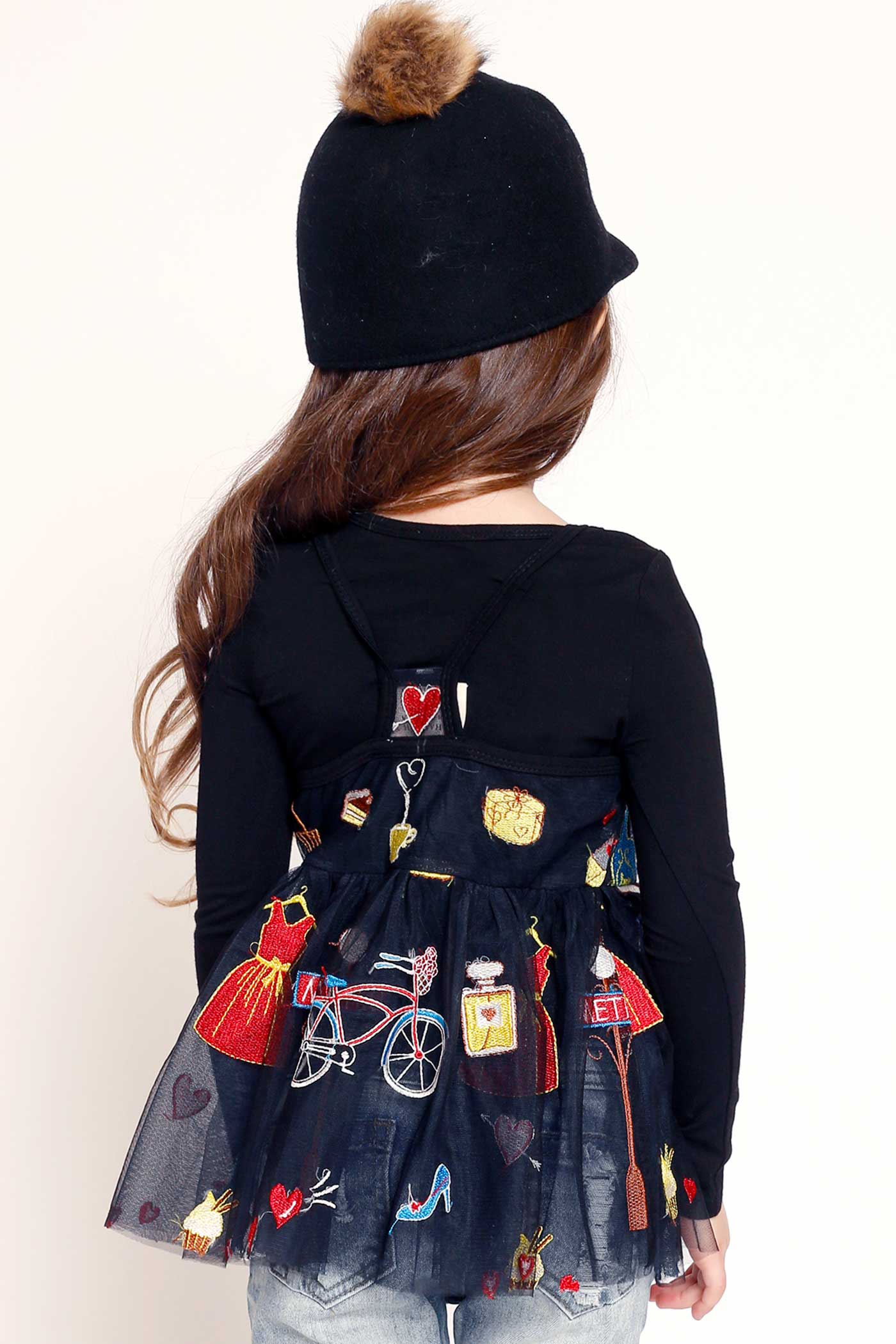- Fancy fashion icon embroidered mesh cami doll overlay top