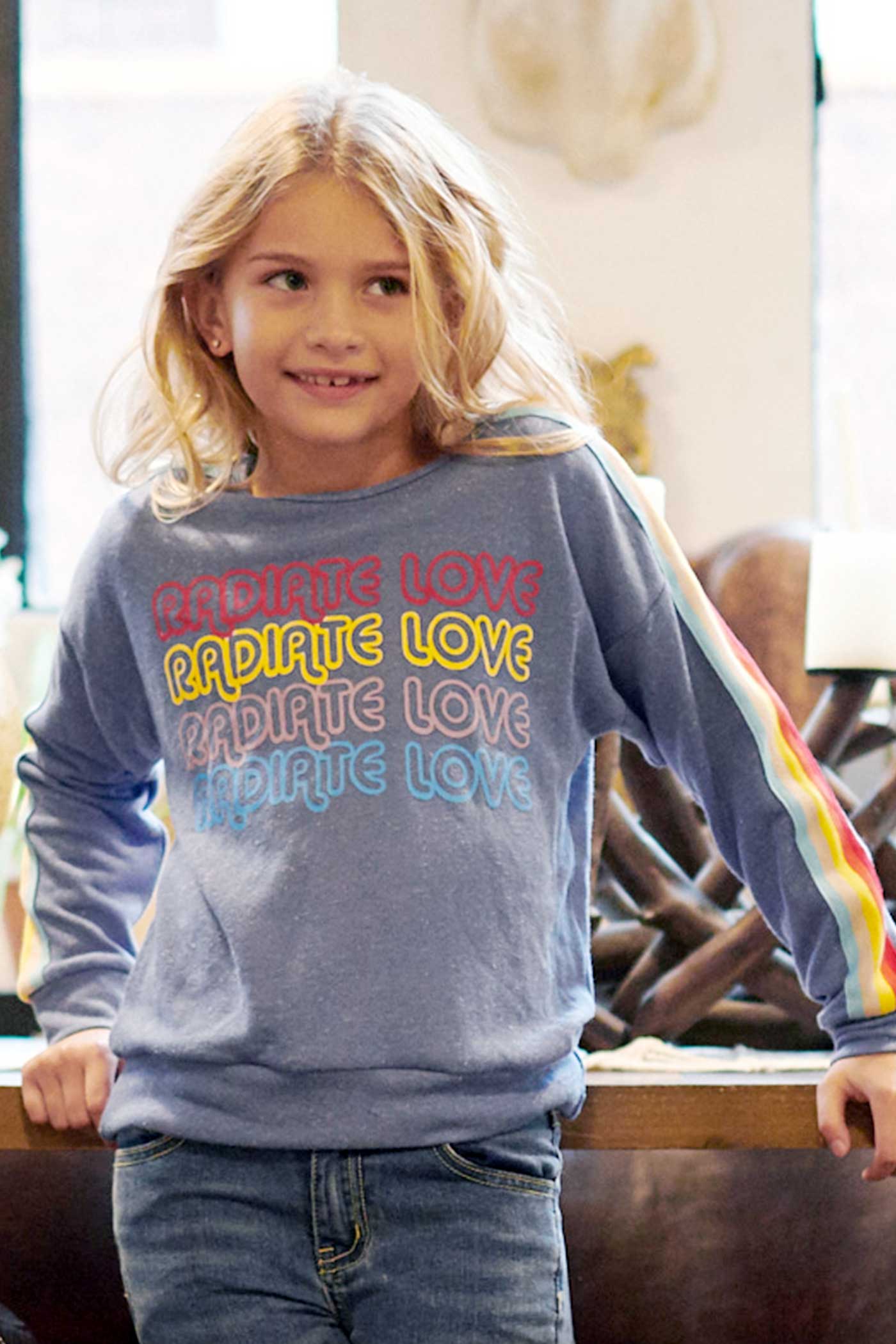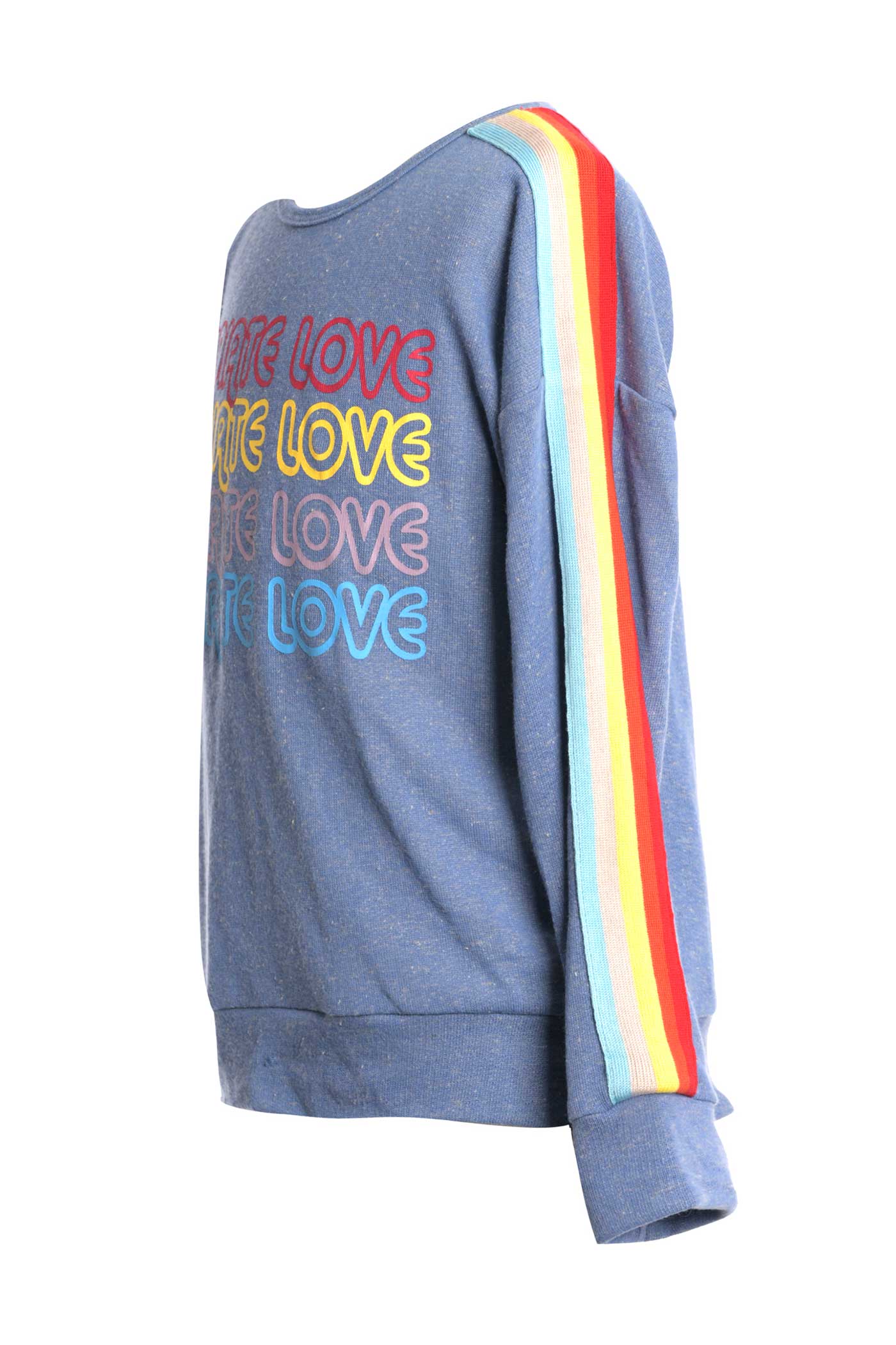 "Radiate Love" sporty casual tween/teen style top with rainbow trim highlights, trendy twisted open-back design makes it so unique.