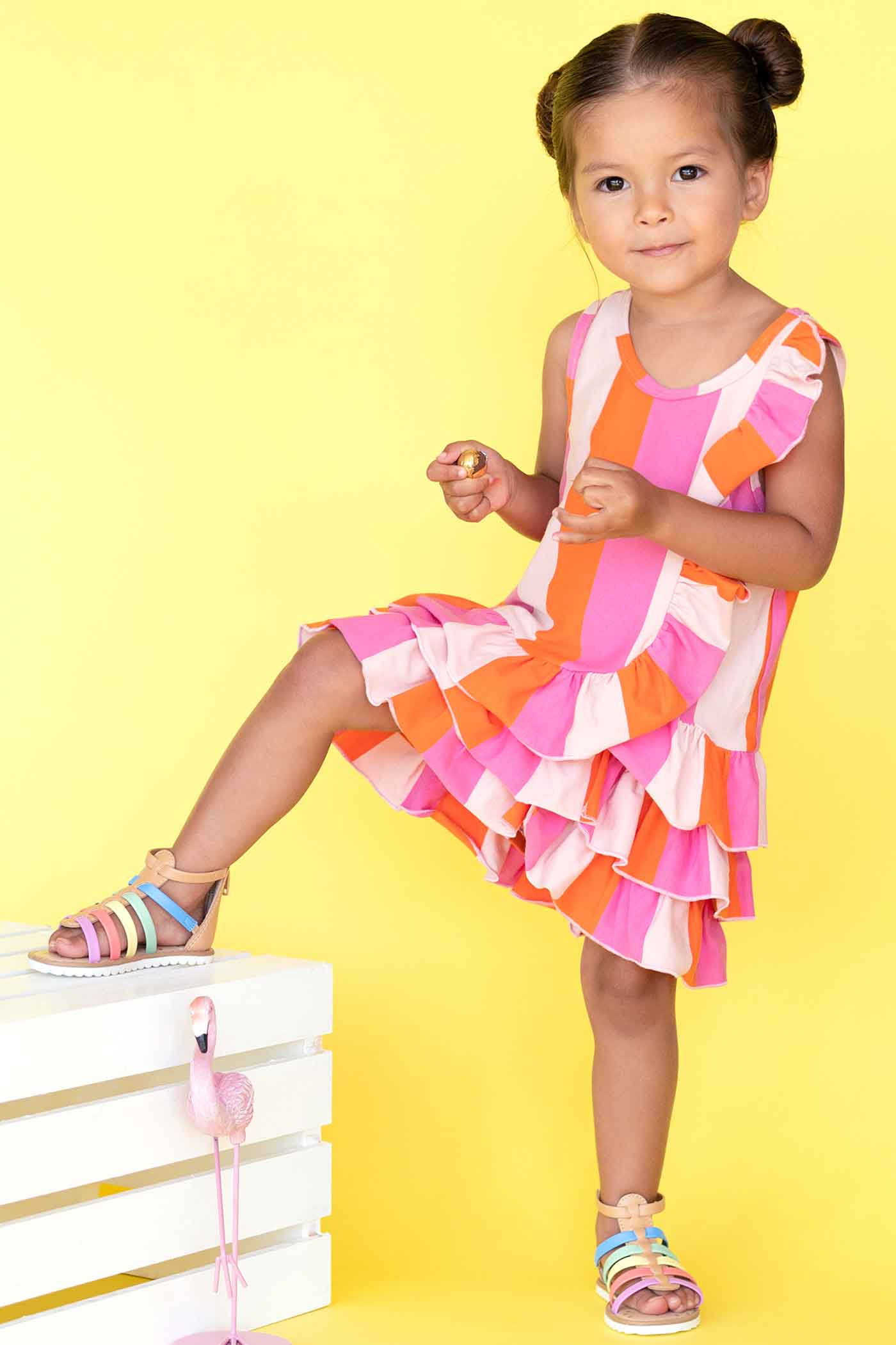 - Adorable asymmetrical ruffle and triple ruffle tier design on the skirt