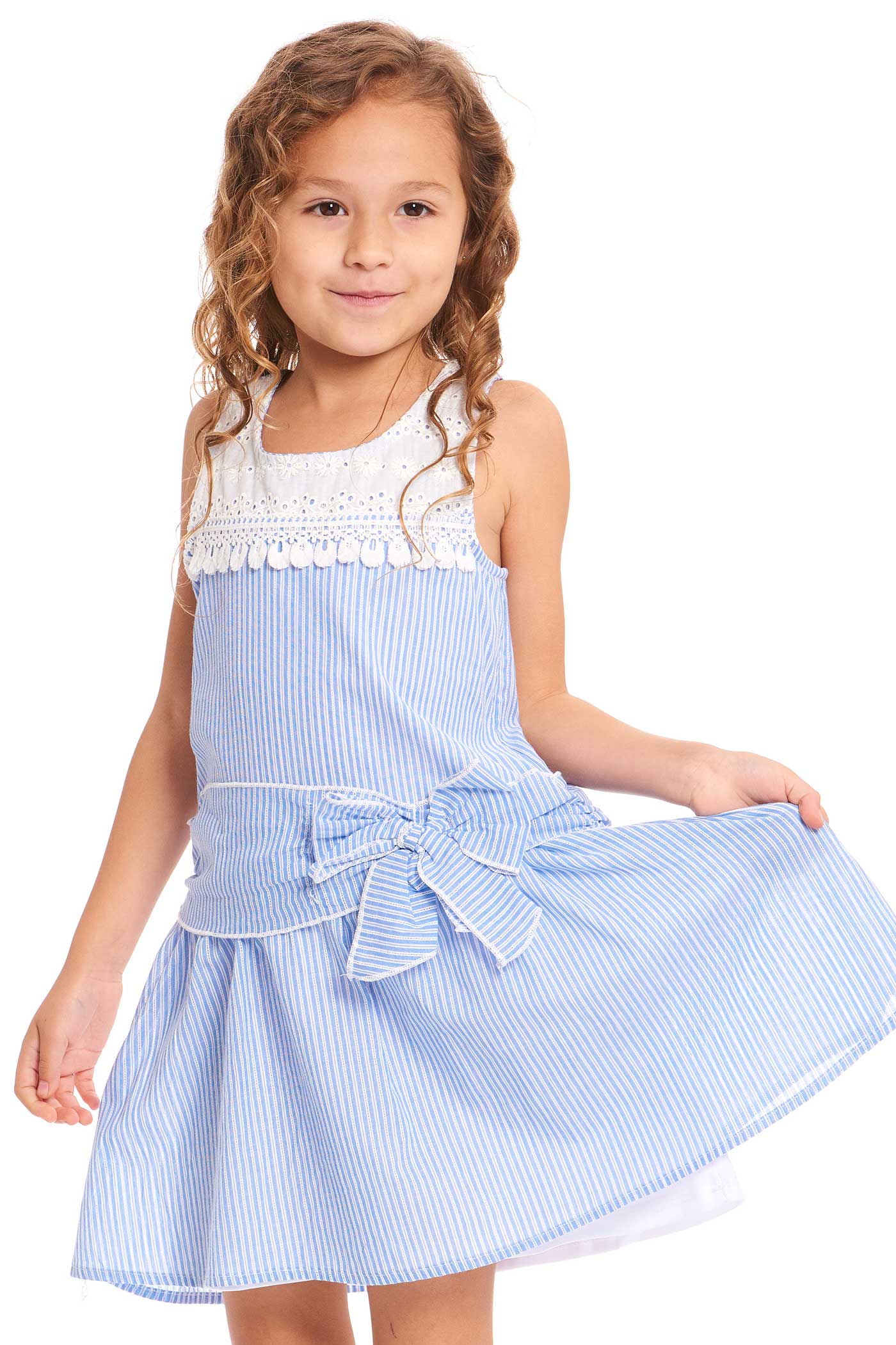 - Summer-perfect blue and white pinstripe and white eyelet panel combination