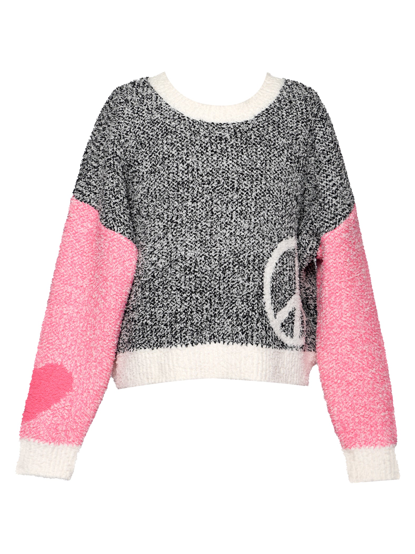 Spread good vibes in this cozy knit sweater featuring a bold peace sign graphic paired with a charming heart detail on the sleeve. Perfect for expressing your laid-back, feel-good style, this piece combines comfort with a touch of whimsy. Whether you're heading out for casual hangouts or relaxed weekends, this sweater brings warmth and personality to your wardrobe. A fun way to show the world you're all about peace, love, and good times.