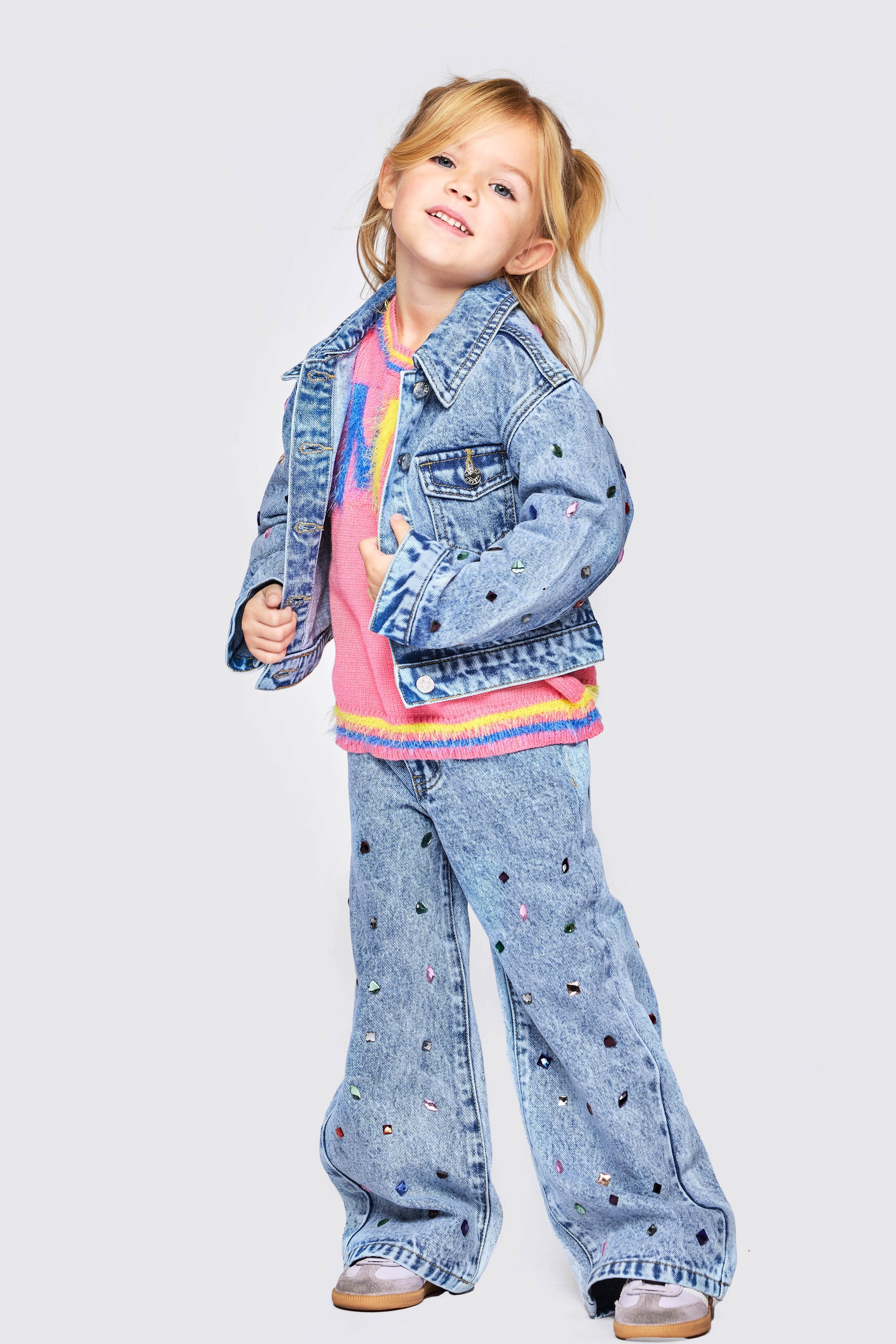 Elevate her denim game with these eye-catching acid wash pants featuring sparkly rhinestone accents! The trendy washed finish gives off that cool, vintage vibe while the shimmering details add instant glam to any outfit. Perfect for pairing with our acid wash jacket for a coordinated look, or mix and match with her favorite tops for endless styling possibilities. Comfortable, fun, and totally Instagram-worthy!