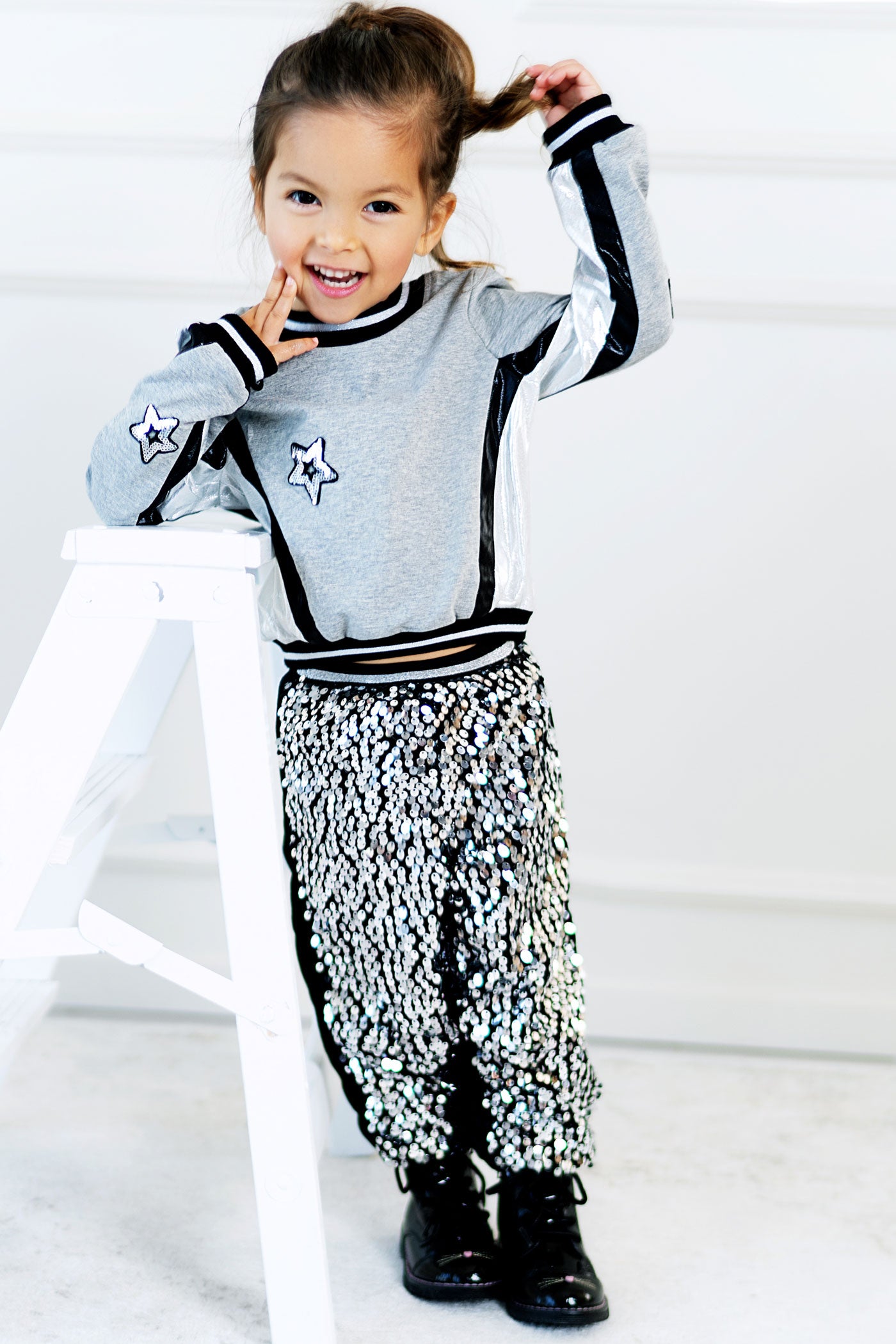 Our Sequin Jogger is an exceptional addition to your kid's wardrobe this fall/winter season. Crafted by Baby Sara, these joggers embody a unique fusion of comfort and style, perfect for athletic activities or casual wear. The design is grounded in high-quality materials with a focus on distinctive trims and treatments. Enjoy the funky, yet sensible fashion-forward style that Hannah Banana is renowned for. These joggers will not only keep your child warm but also add a stylish flair to their outfit.