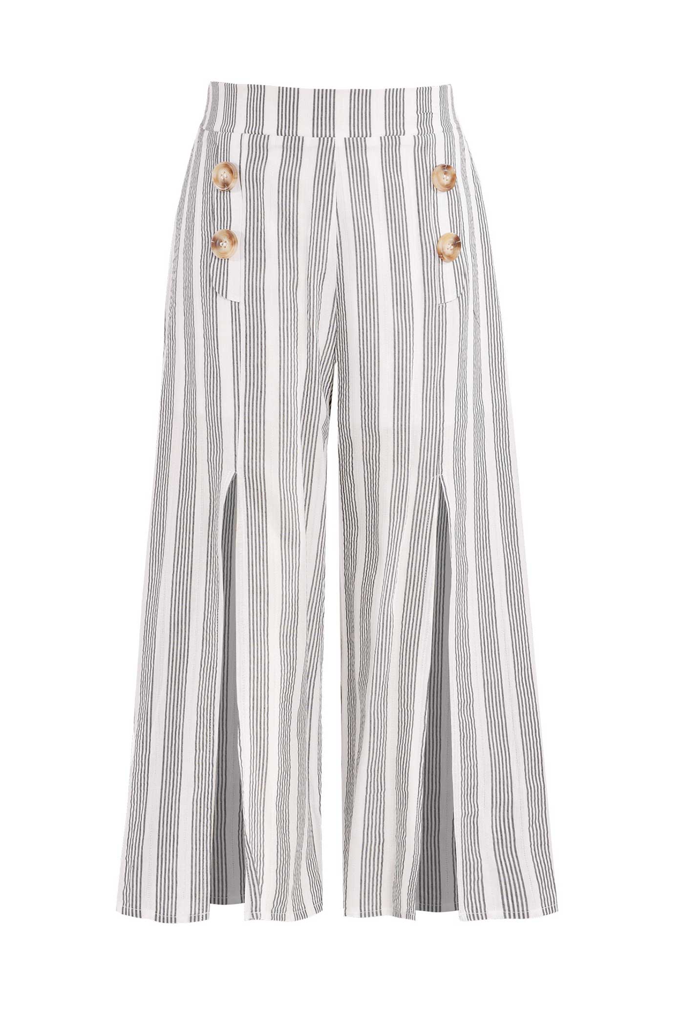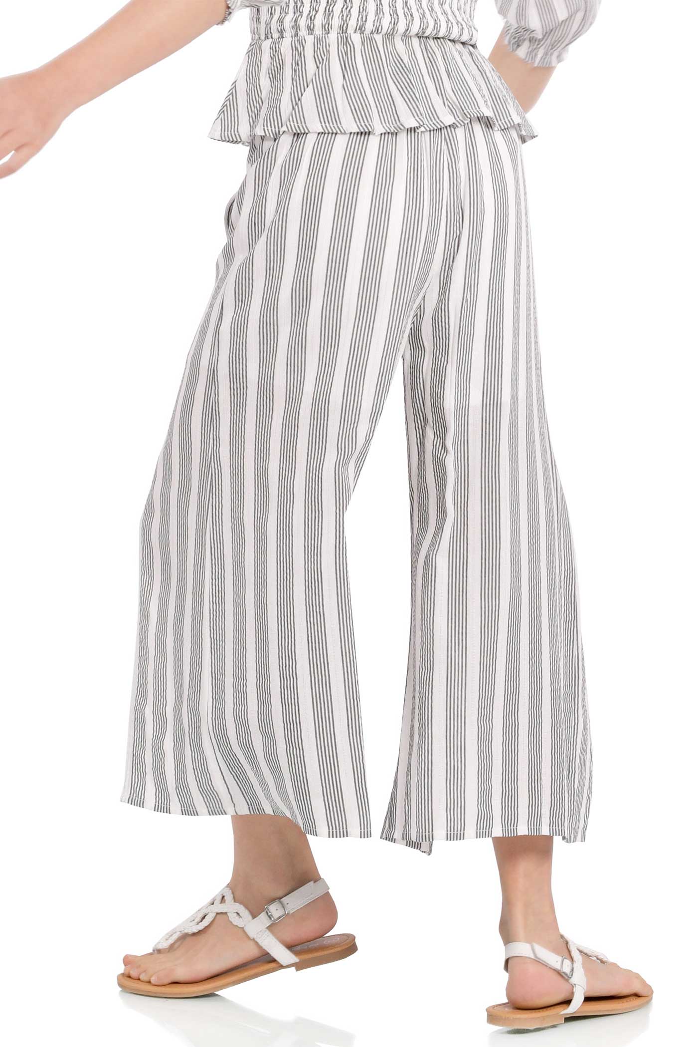 These big girls' culottes bring summer style with white and grey pinstripes and a fun retro button detail. The trendy front slits add a playful twist, while the ankle length and full elastic waist keep comfort front and center. Perfect for sunny days, these imported pants are easy to wear and easy to love. (Pants only, no matching top included!)