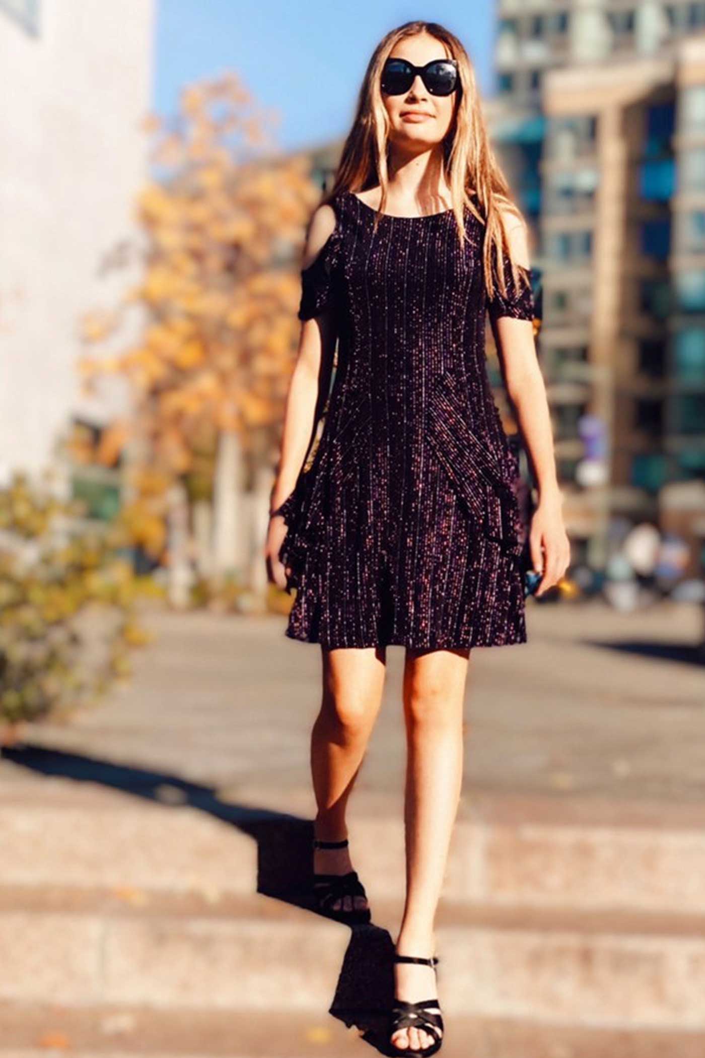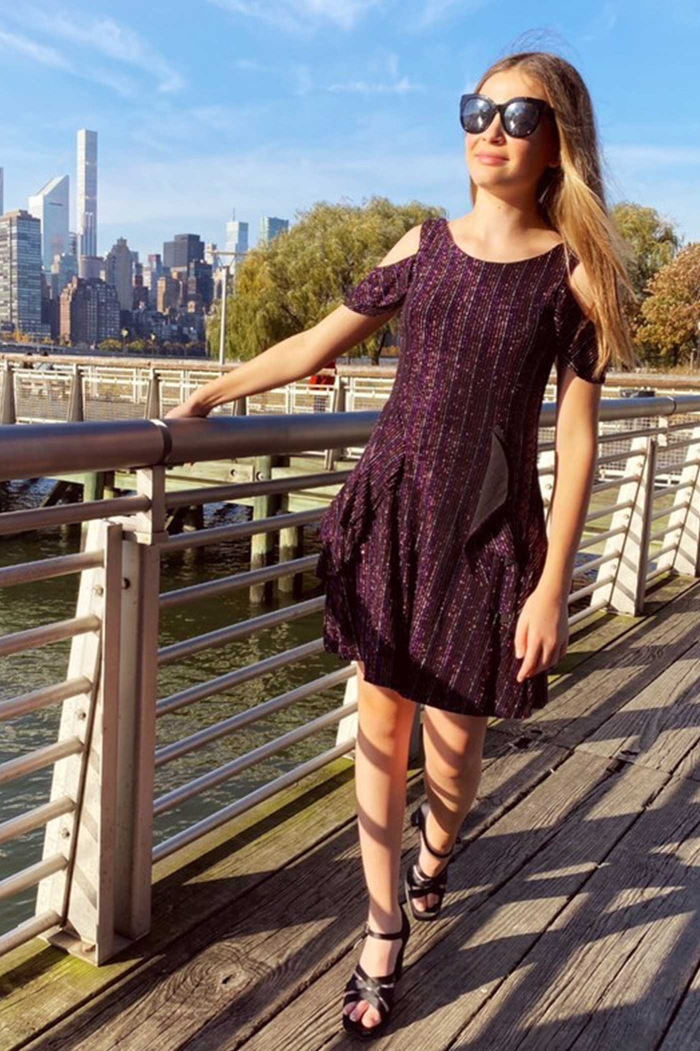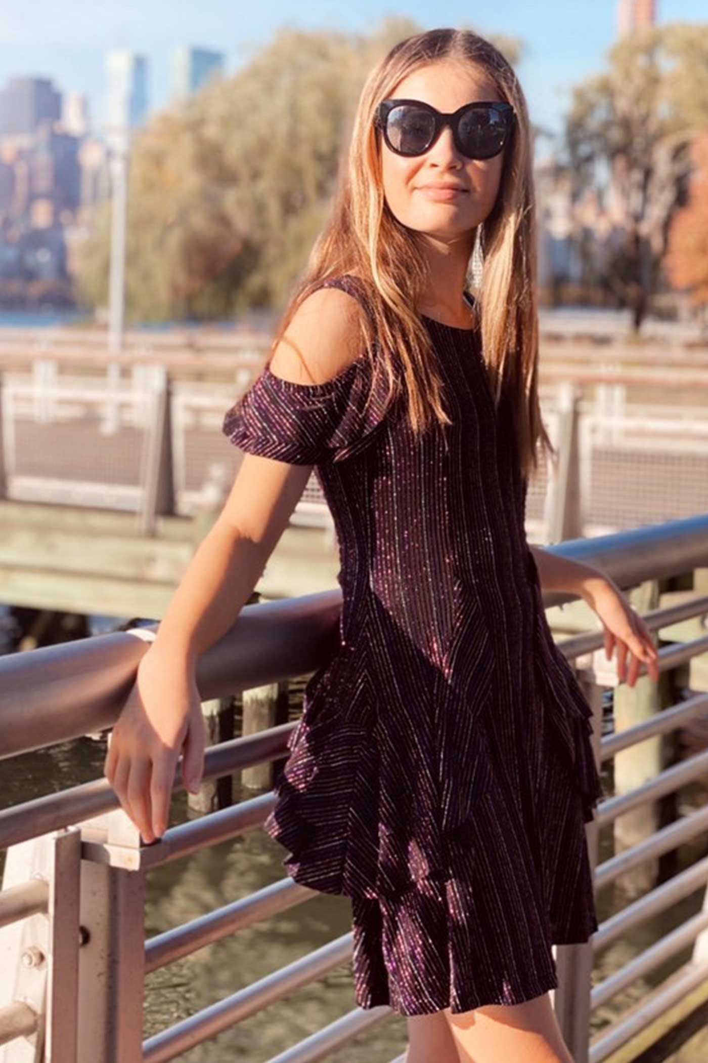 This playful party dress features a trendy cold shoulder design and a dropped waist silhouette that flatters every movement. Crafted from shimmering metallic fabric, it dazzles with triple ruffle layers adding fun and flair. The back zipper ensures easy wear, while the right-above-the-knee length keeps it perfect for all occasion. Made with a comfortable blend of polyamide, polyester, and spandex, it’s ideal for big girls ready to shine at any celebration.