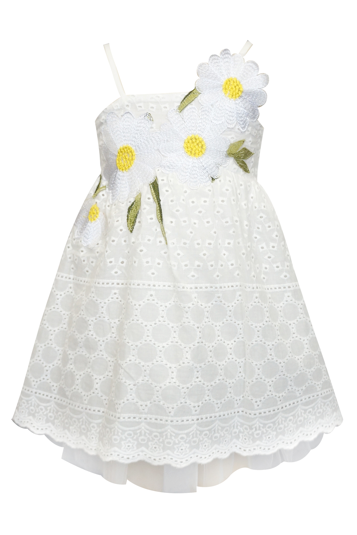 This charming doll dress features a classic empire waist and playful daisy trim, perfect for sunny days. Crafted from breathable eyelet lace, it’s fully lined for comfort and falls right above the knee, making it ideal for little girls to twirl and play in style all summer long. Imported with care to bring a touch of sweetness to any occasion.