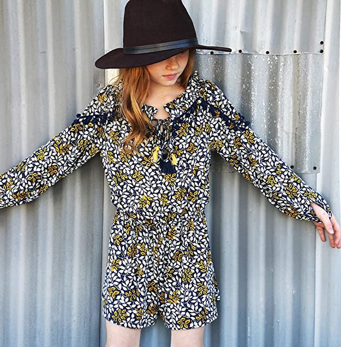 Big Girl Leaf Boho Pom Pom Tassel Romper