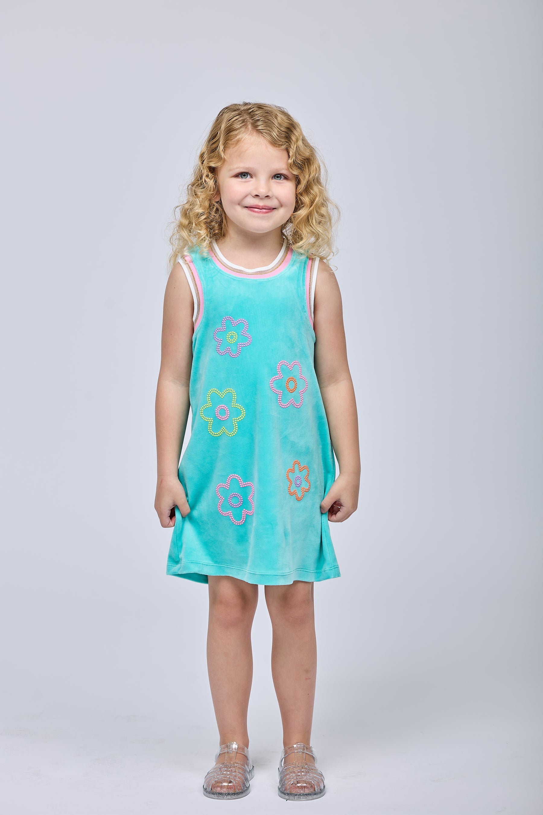 Twirl in style with this charming a-line velour dress, designed to make every moment feel special. Soft velour fabric drapes beautifully while the playful flower detail adds a whimsical touch that kids adore. Perfect for playdates, parties, or everyday adventures, this dress combines comfort with eye-catching flair. The classic a-line silhouette flatters and moves with your child, making it an instant favorite in any wardrobe.
