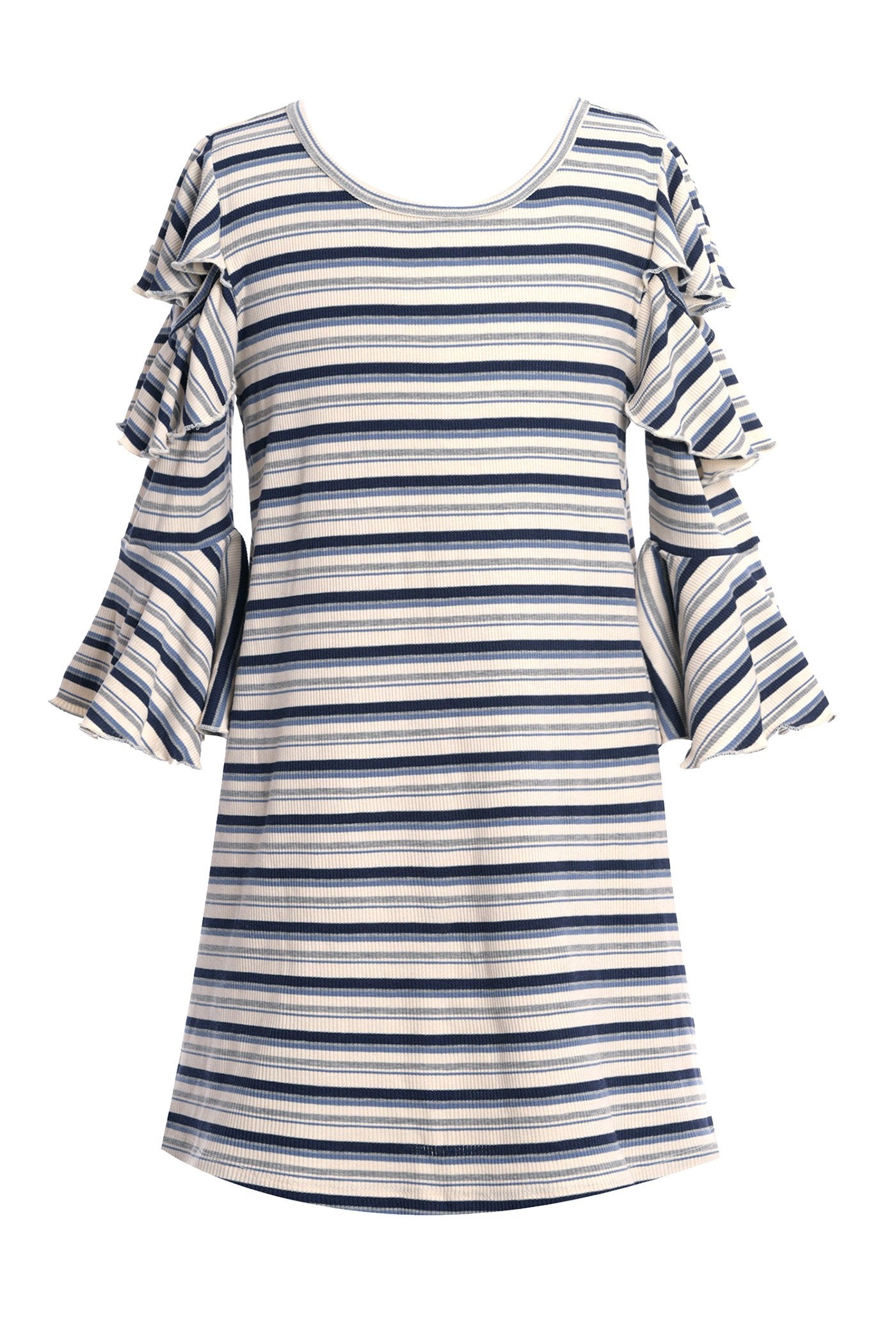 This playful cold shoulder dress is perfect for big girls who want comfort and style all year long. Featuring a trendy cold shoulder design and timeless stripes, it’s great for school, events, or weekend getaways. The soft knit fabric with a flattering ruffle detail adds a fun touch while keeping things cozy. Made from a comfy blend of cotton, rayon, and spandex, it moves with you wherever