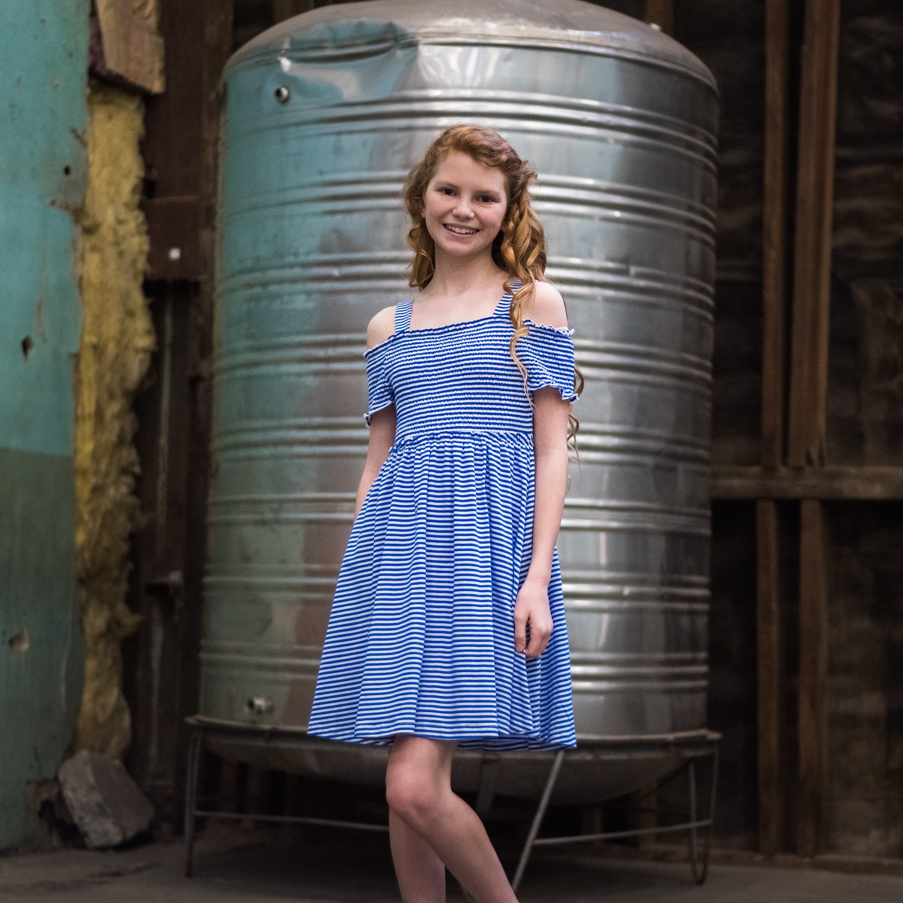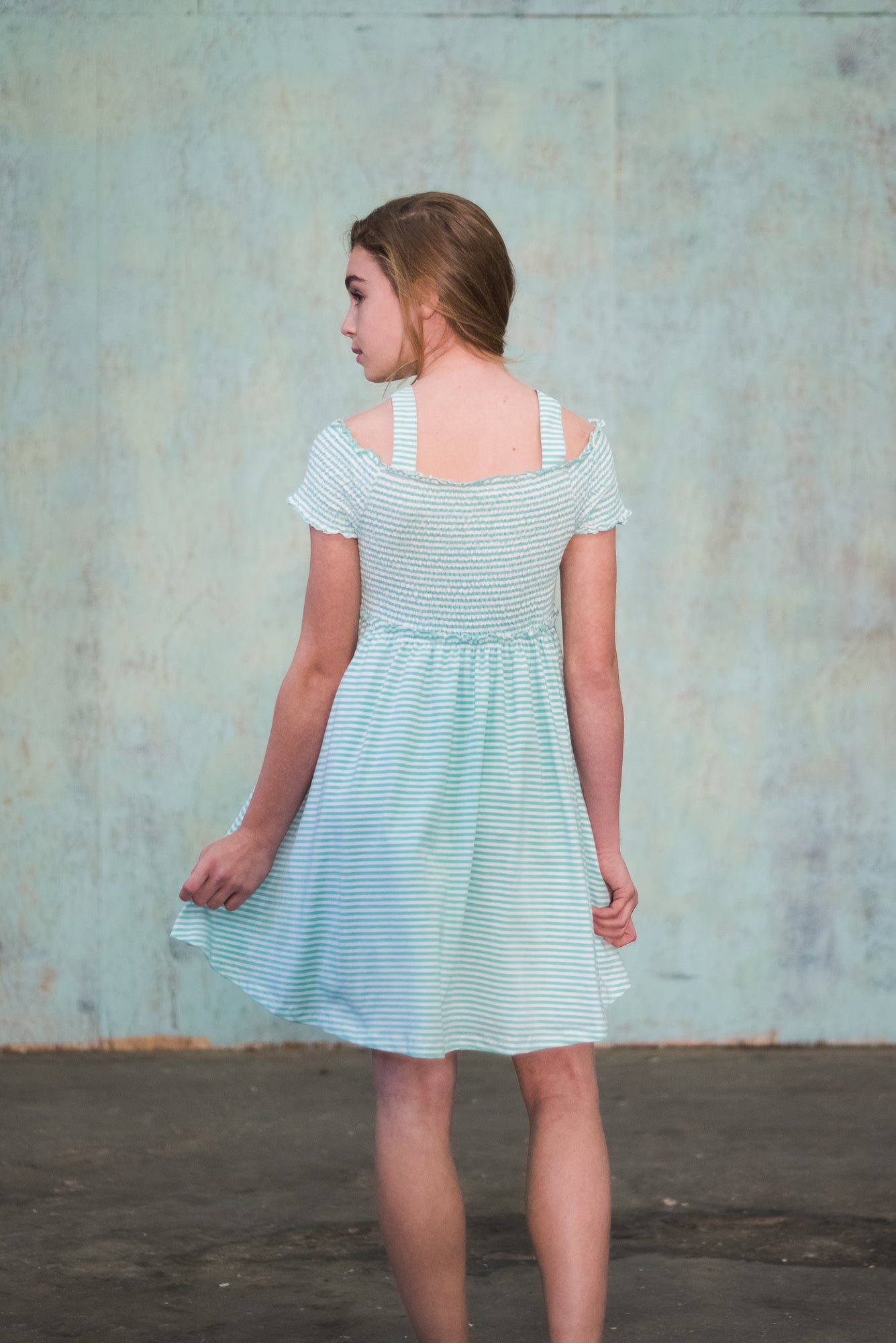 Off-the-shoulder style meets playful stripes in this charming dress for girls. The relaxed neckline creates an effortless, trendy look, while the classic striped pattern adds timeless appeal. Available in four versatile colors to match her style. Perfect for casual outings, playdates, or seasonal celebrations. Soft, comfortable fabric keeps her moving freely all day long.