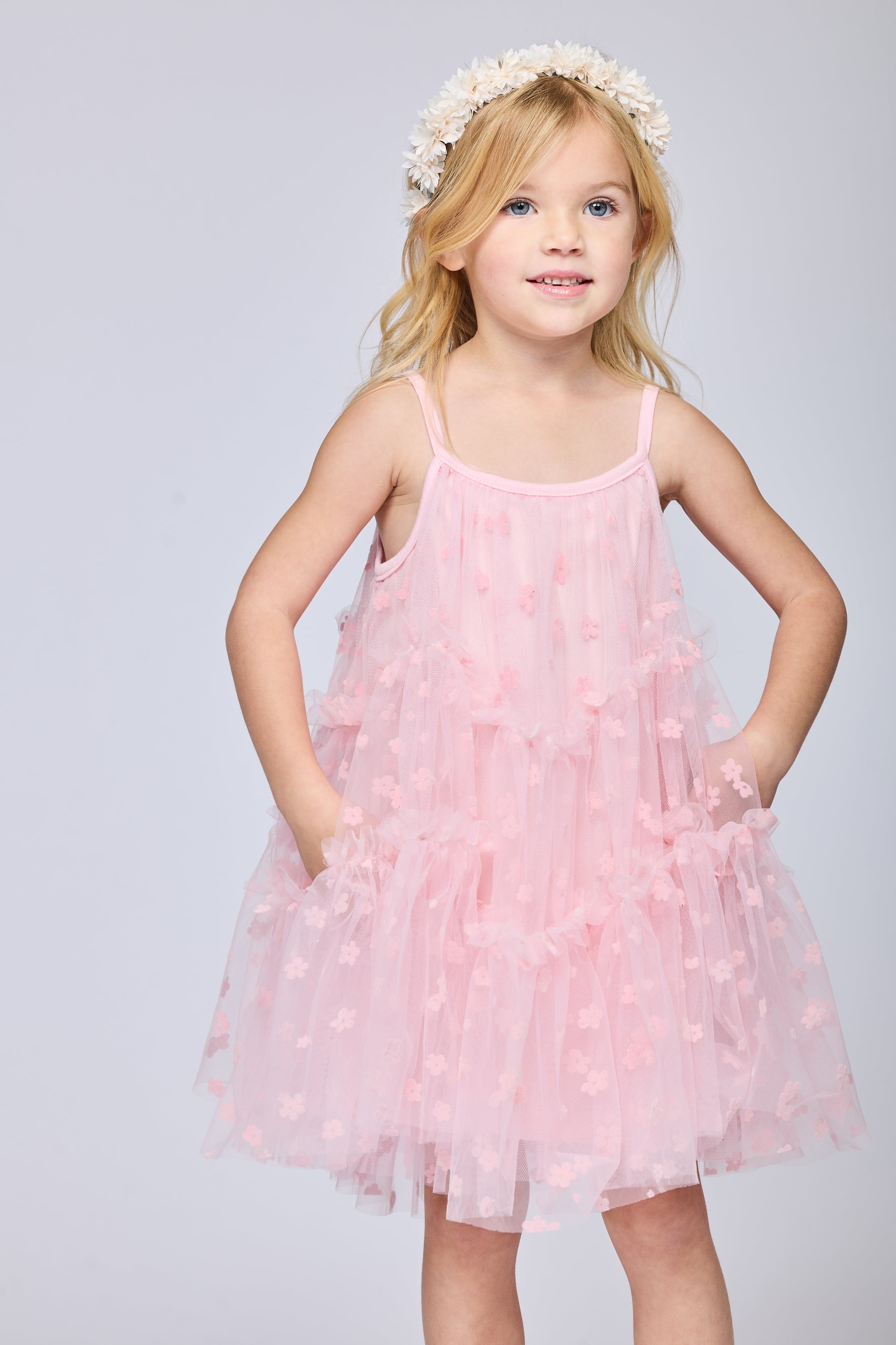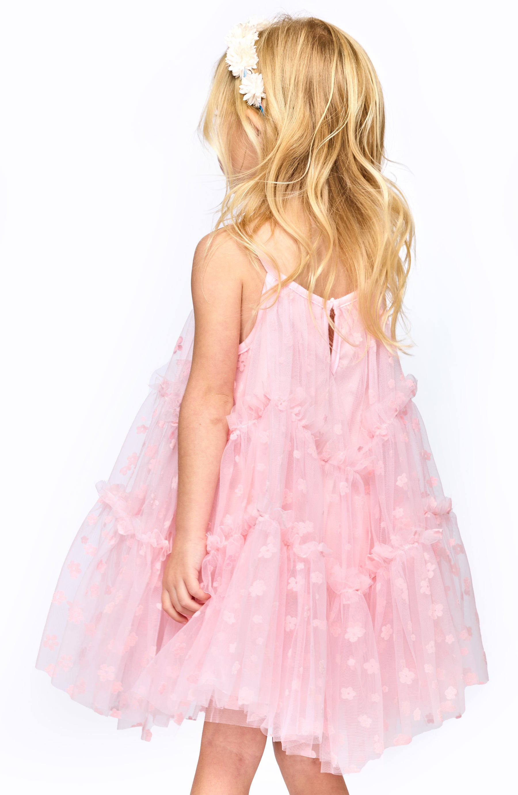 Layer up the fun with this dreamy tiered tulle dress. Each flowing tier adds volume and whimsy, creating a silhouette that spins and sways with personality. The delicate tulle fabric feels as light as air while delivering that show-stopping wow factor. Whether she's dancing at a party, twirling for photos, or just feeling fabulous, this dress brings instant magic to the moment. A wardrobe essential that makes every day feel like a celebration.
