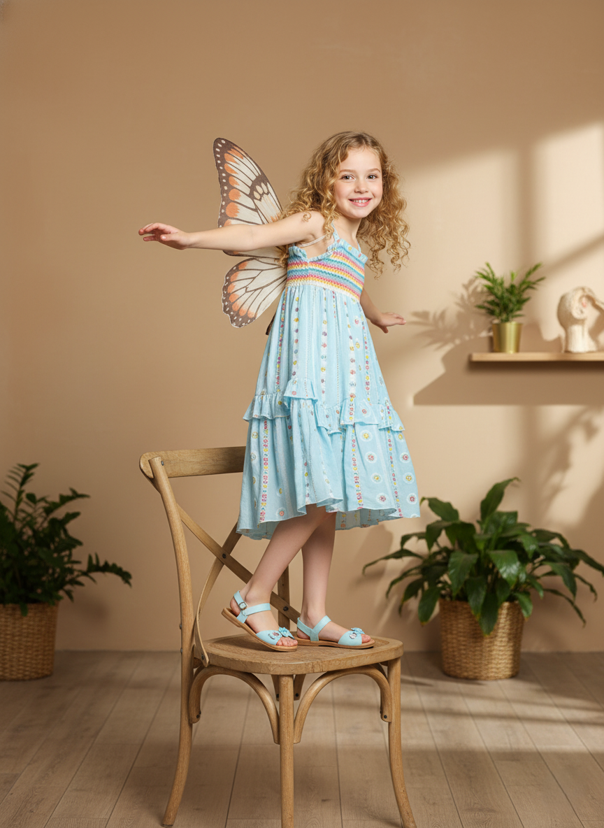 A versatile empire waist dress for girls (sizes 4–14) that transitions seamlessly from special occasions to everyday adventures. The high-low hemline creates dynamic movement while delicate embroidery adds refined detail. An structured waist delivers a polished fit, and the asymmetrical cut brings contemporary flair. Crafted from soft, quality fabric for all-day comfort and confidence.
