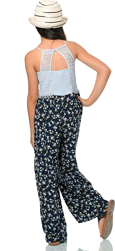Little Girls Crochet Vintage Floral Split Leg Jumpsuit