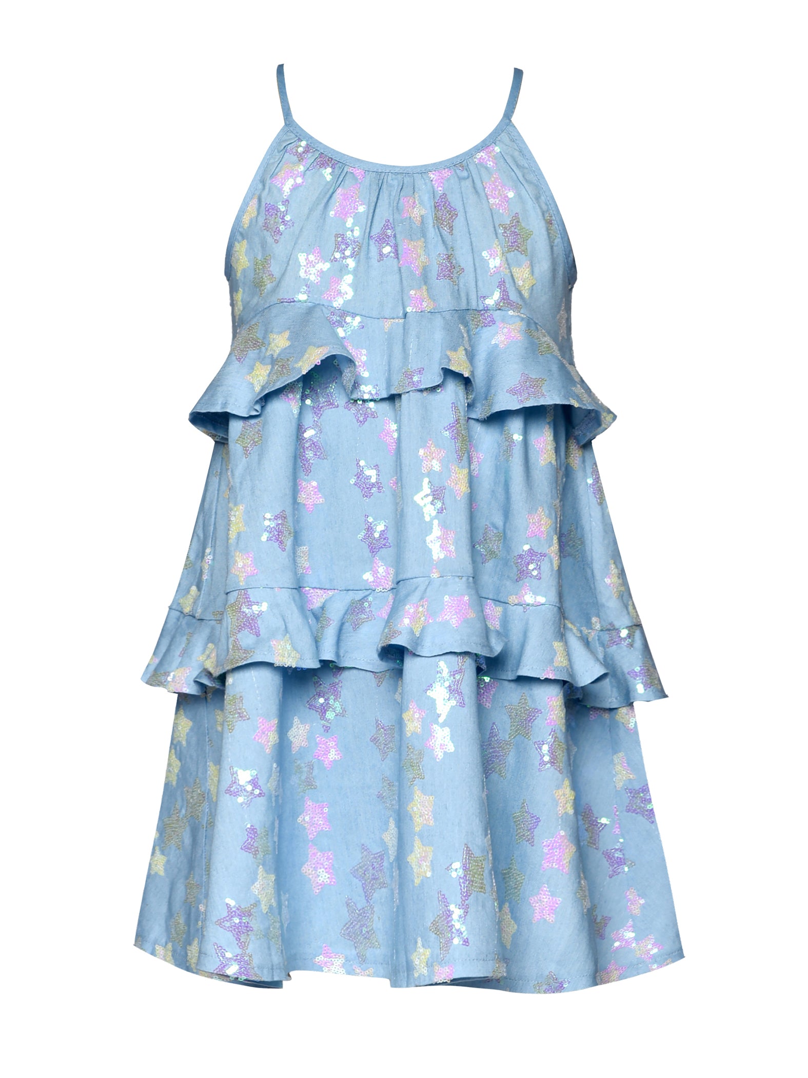 Twinkle and shine in this enchanting star sequin ruffle dress, designed for girls ages 4-16. Delicate sequins catch the light with every movement, while playful ruffles add dimension and charm. Perfect for special occasions, parties, or whenever she wants to feel like a star. The comfortable fit ensures all-day wear, making it an instant favorite in any young fashionista's wardrobe.